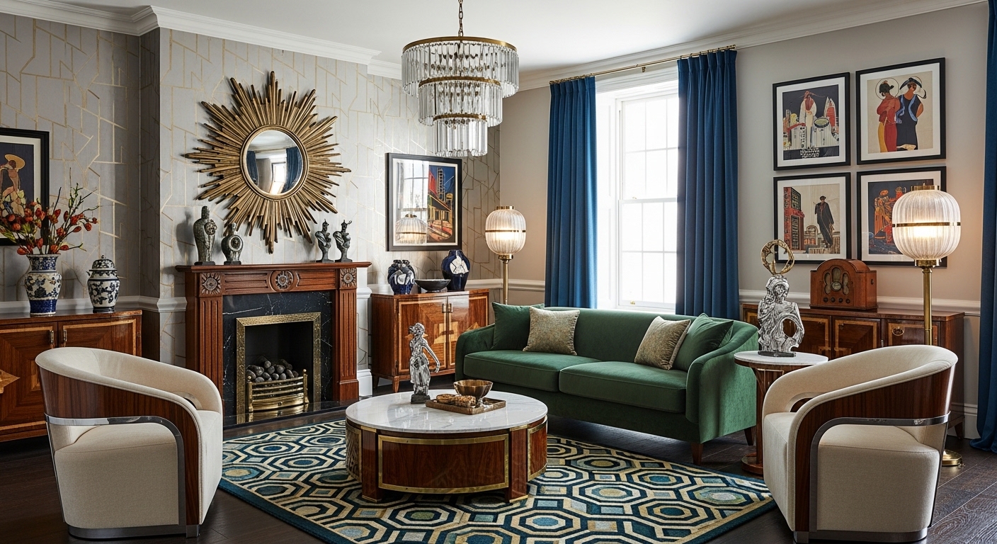 We celebrate the Glow of the Machine Age. We utilize lacquered finishes that reflect light like a mirror, paired with frosted glass and polished brass. Lighting is treated as a sculptural centerpiece—often featuring "skyscraper" style pendants or tiered chandeliers. For Tribuz, Art Deco is about the "Power of the Statement"—it is a style for those who want their home to be a bold, luxurious, and timelessly glamorous icon.