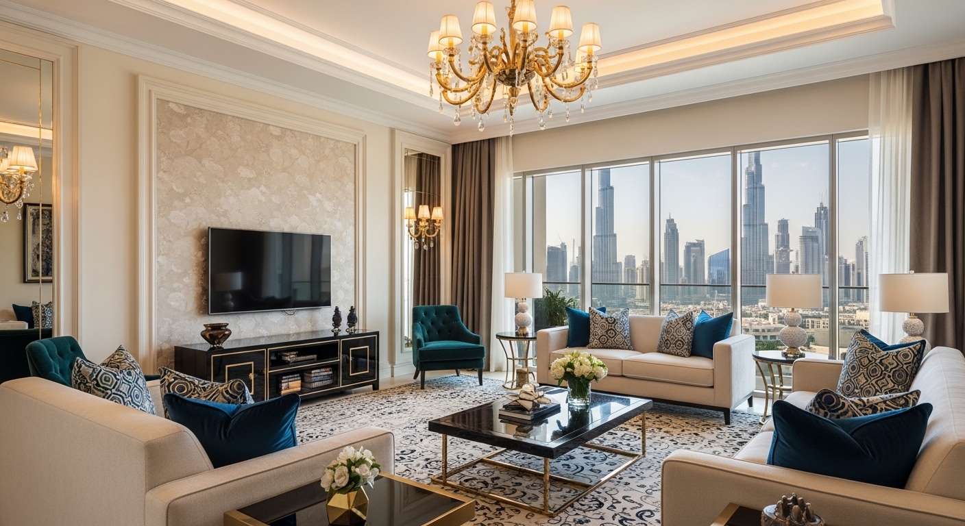 The material palette is a study in high-contrast brilliance. We pair the cooling touch of White Carrara marble with the warmth of polished walnut and accents of brushed titanium. Lighting is treated as jewelry; we design custom "Light Sculptures" that serve as the focal point of every room. For Tribuz, Gulf Luxury is not just an interior—it is a status symbol, a high-performance environment designed for the ultimate in hospitality and private comfort.
