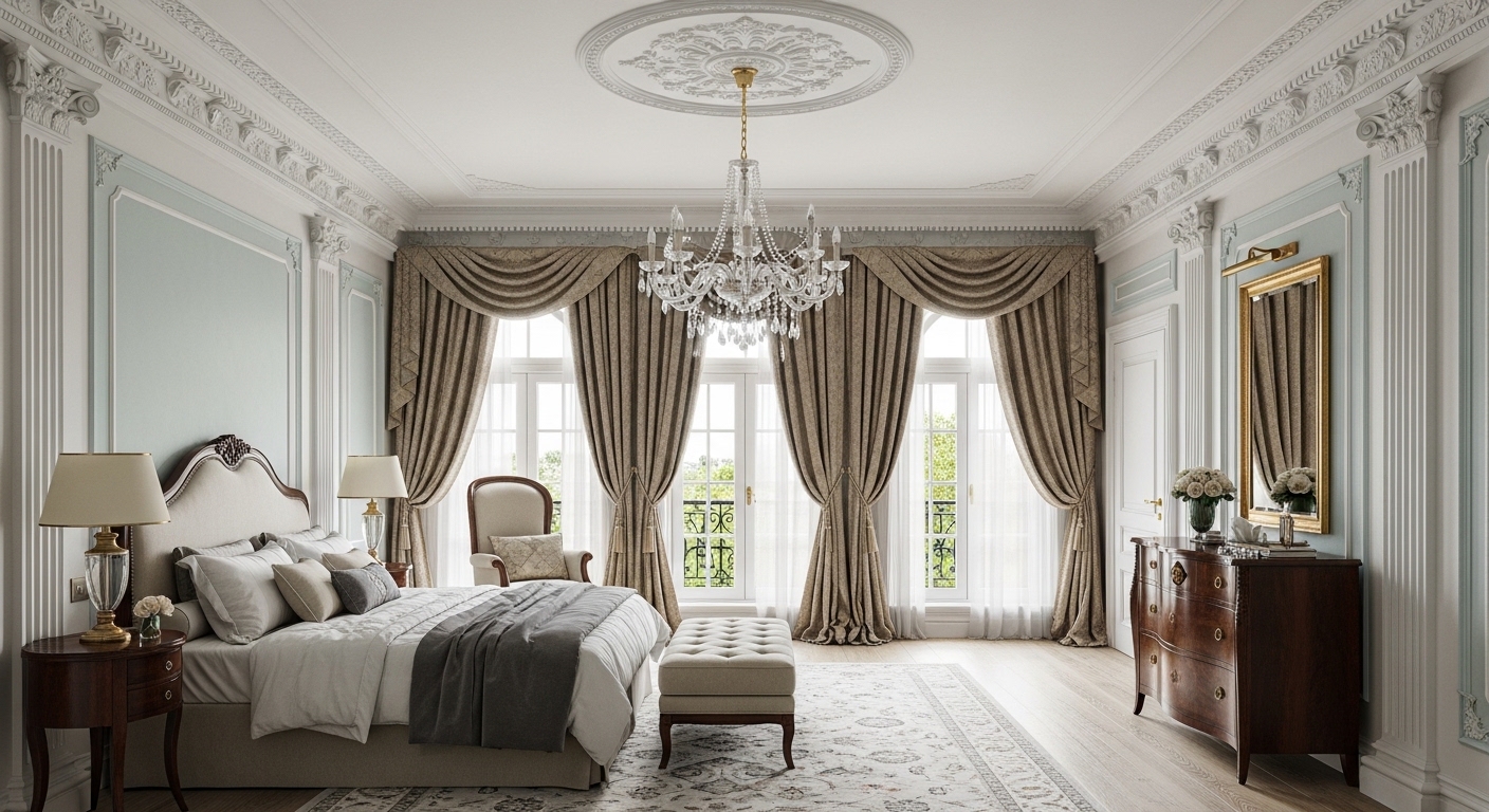 The Neoclassical process at Tribuz begins with The Symmetry of Order. Unlike modern styles that embrace asymmetry, Neoclassical design demands a balanced "Axis." We begin by identifying the focal point of a room—usually a fireplace, a grand window, or a structural portal—and mirroring the layout around it to create a sense of monumental calm.